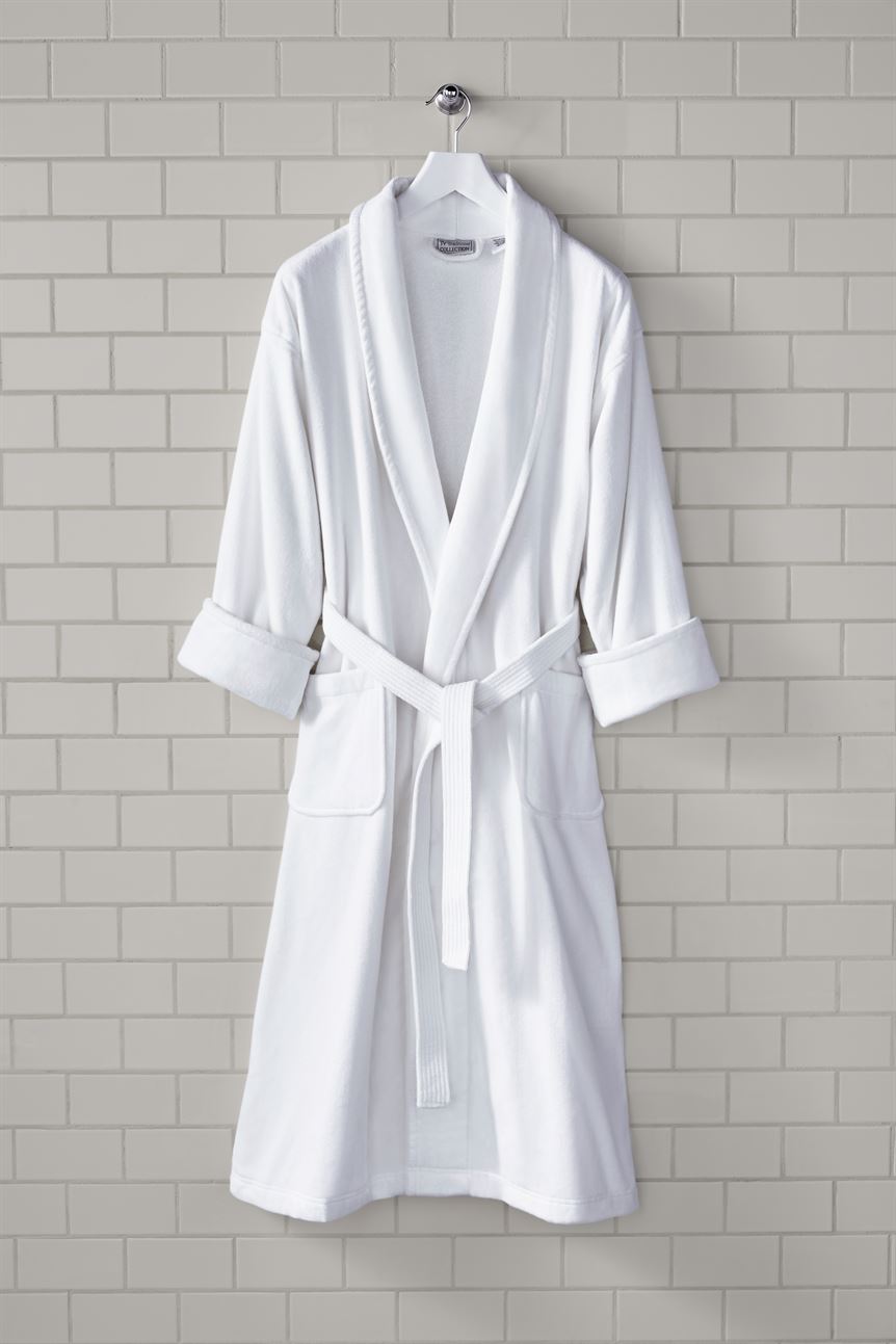 This Classic Luxury Terry Velour hotel robe is the timeless robe for after a bath or relaxing in style. 100% cotton terry velour provides ultimate absorbency and comfort. Sold in a case of 8.