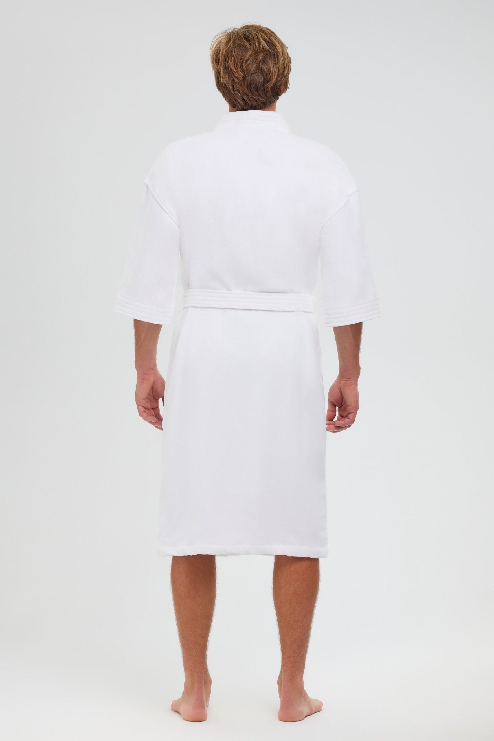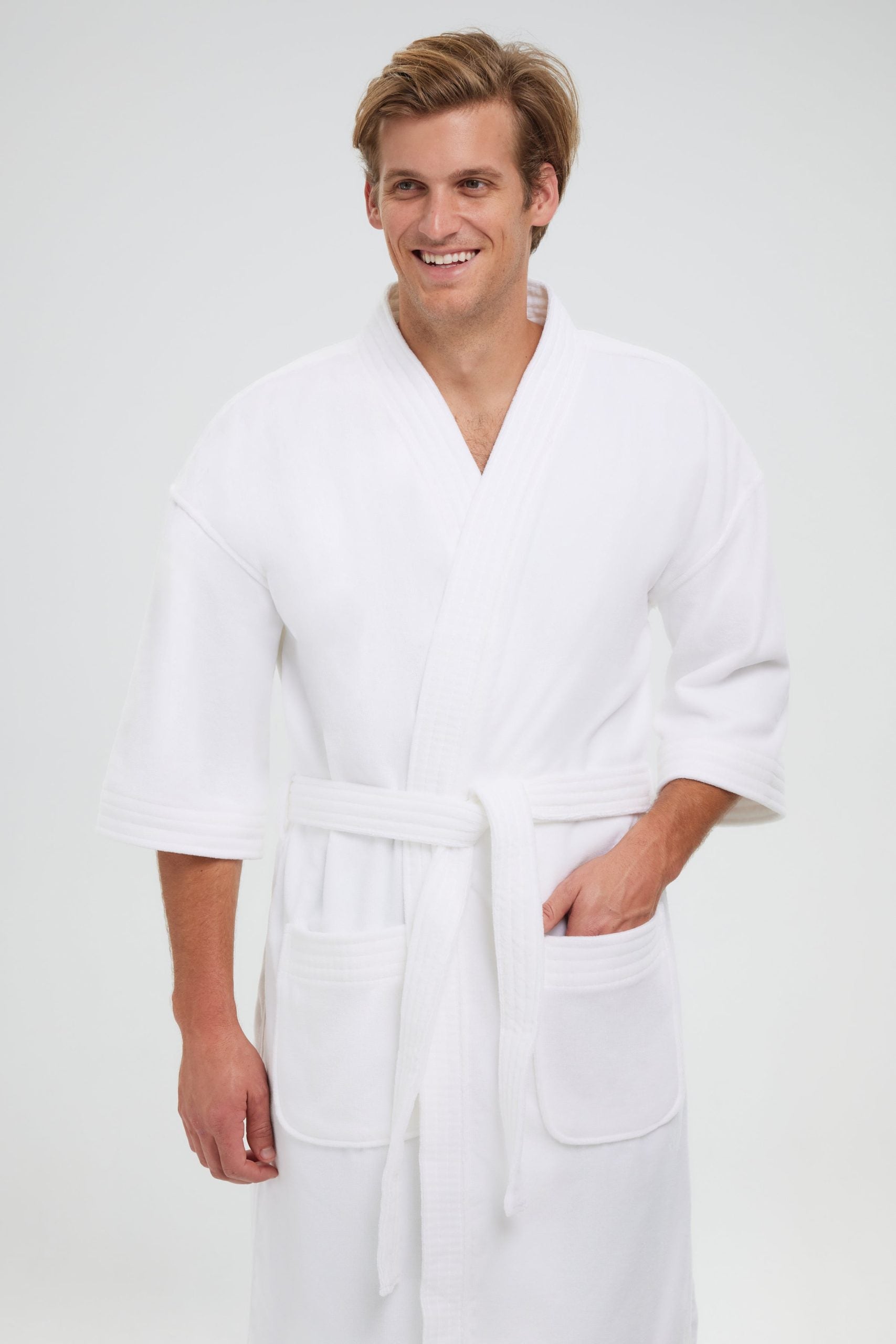 An ageless fabric constructed with fine shears to create a velvet touch outside while maintaining absorbent loops on the inside. Bathrobe details include adjustable belt loops for flexible belt height, patch front hip pockets and hanger loop for convenient storage. Sold in a case of 10.