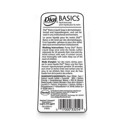 Dial Basics Liquid Hand Soap: Hypoallergenic lotion soap is gentle on the skin. Dermatologist tested. Perfect for any commercial setting including healthcare facilities, schools, offices, restaurants, daycare and more. Broad-spectrum antimicrobial effectiveness with extra moisturizers and conditioners to protect against dry skin. Ideal for frequent hand washing. Effective against bacteria and yeasts. Contains emollients and skin conditioners to ensure mildness. Available in 7.5 oz decor pumps and 16 oz pump bottles. White pearl color, Honeysuckle scent.