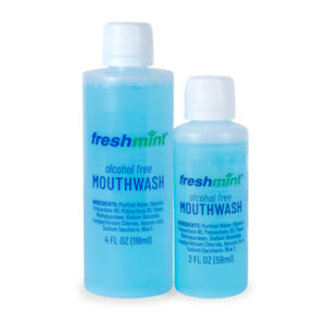 Our alcohol- and latex-free Freshmint mouthwash keeps your mouth feeling fresh!