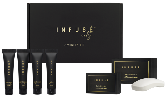 Our Infusé® City amenity kit is designed to make your guests feel comfortable and pampered. The box is convenient to place in any room, saving you housekeeping time and hassle. The kit contains fresh Lavender Mint scented amenities that are eco-friendly and recyclable, showing your commitment to sustainability. Order our amenity kit today and impress your guests with your hospitality! Sold in a case of 20 kits.
