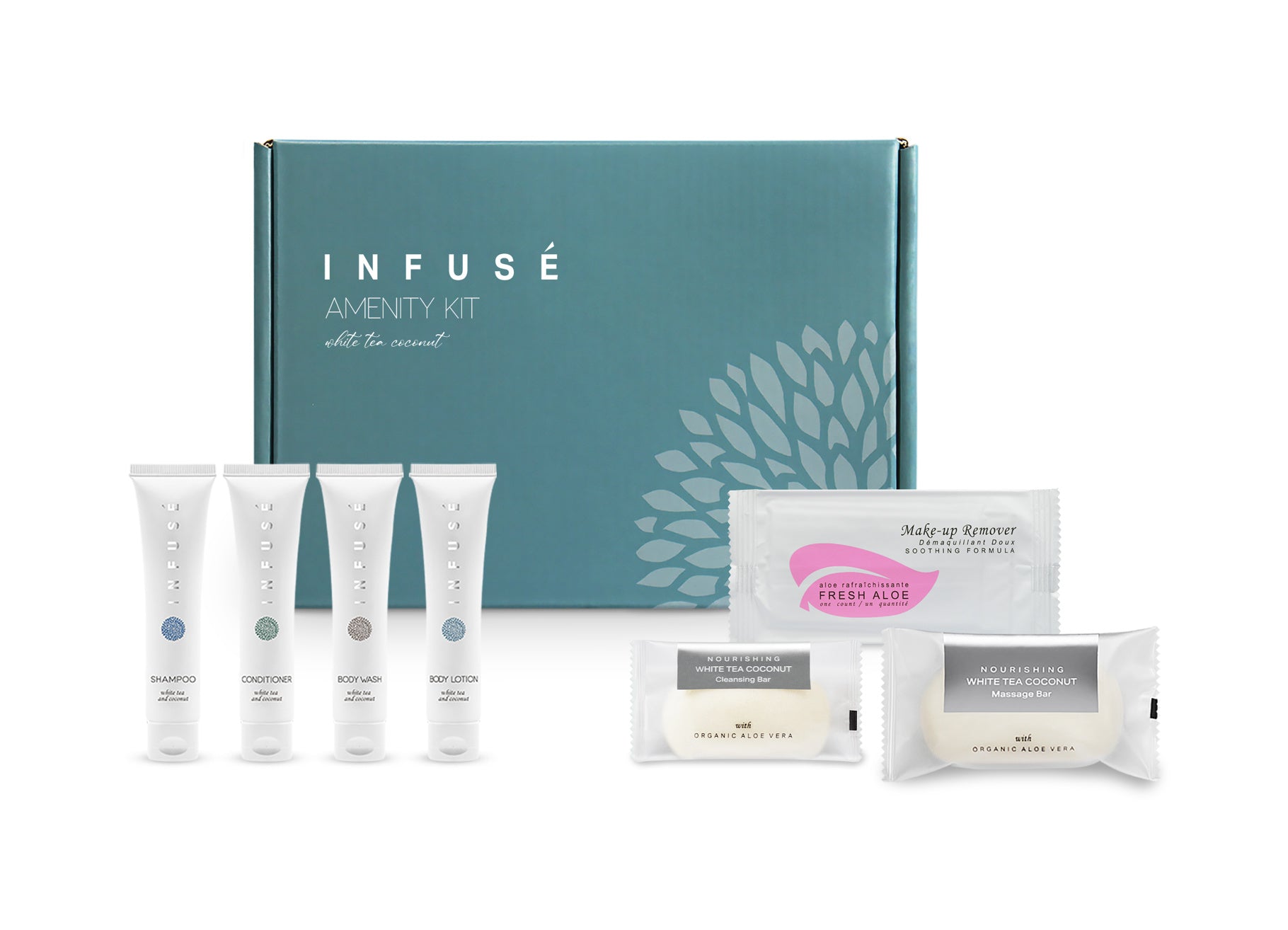 Infusé’s® modern and sleek design with silver foil stamp logo brings a level of sophistication to the upscale guest room.